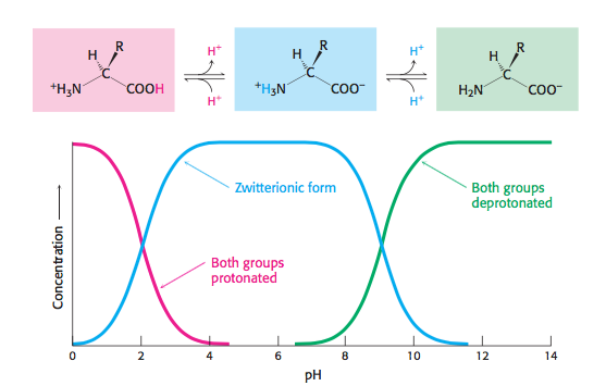 Figure 2: Illustration of the concentration of a molecule in three different states of ionization as a function of pH.