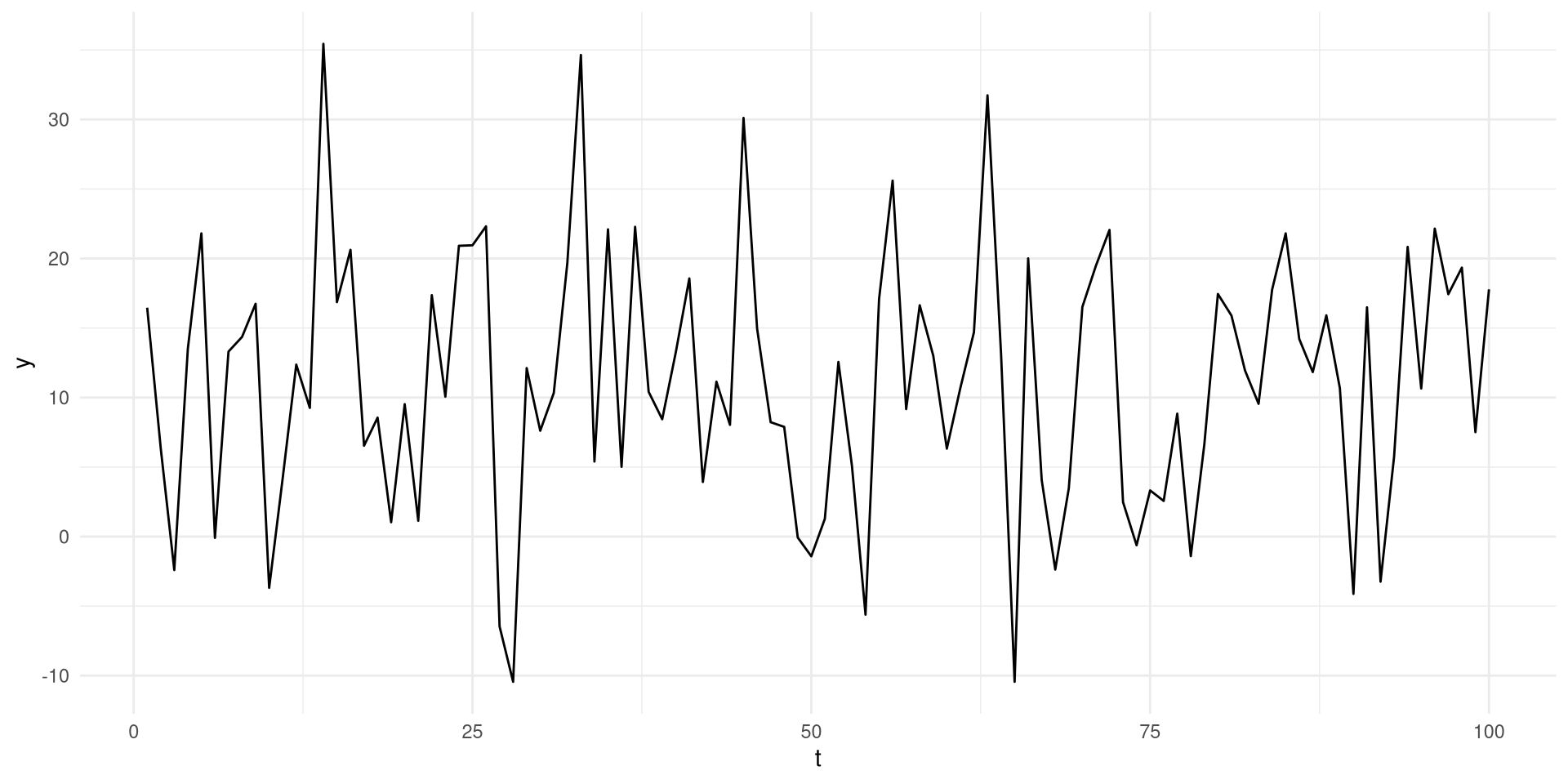 where time is on the x axis and the response variable on the y axis. The first few lines of the generated data are presented below.